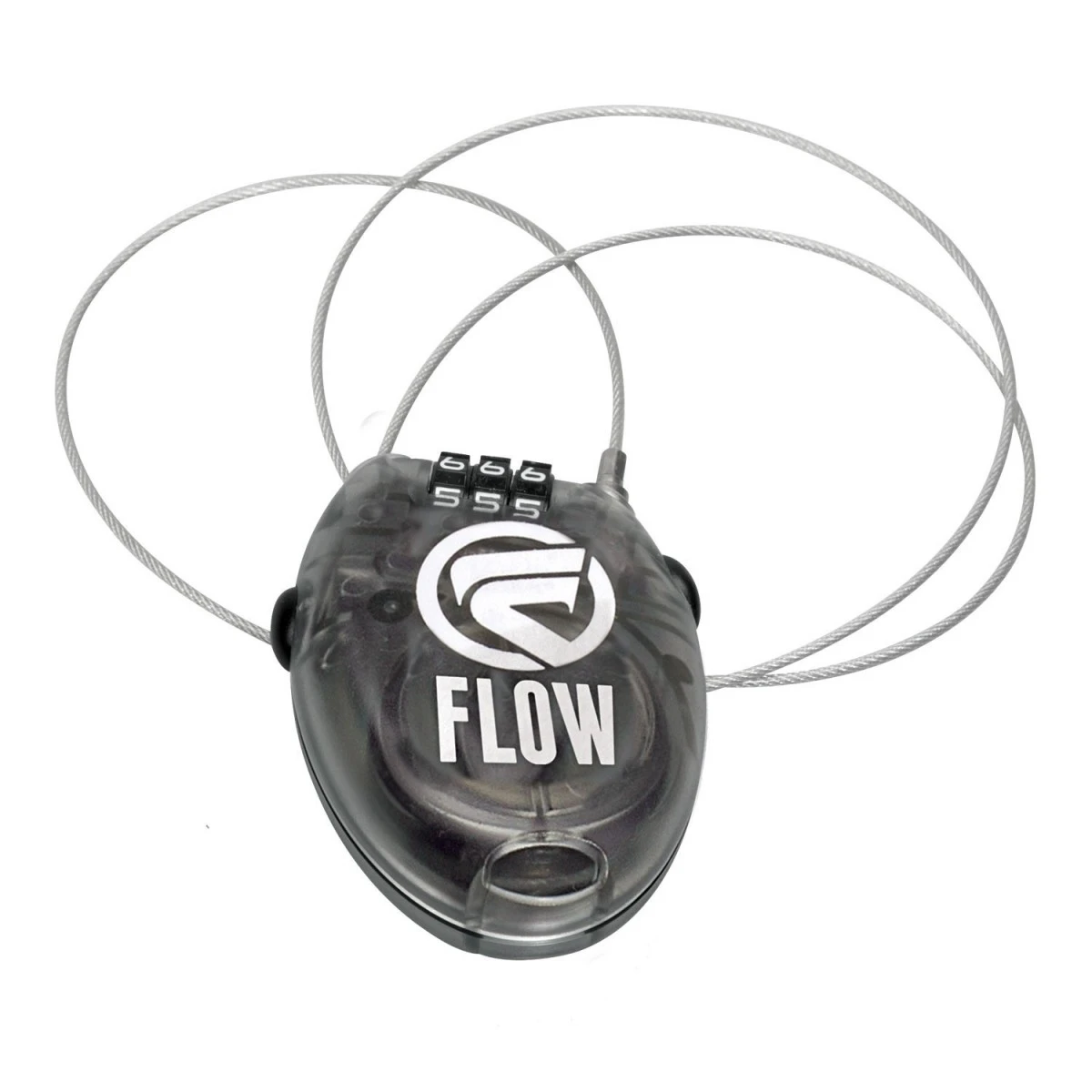 Snowboard lås fra Flow med 80 cm wire og kombinationslås, som man nemt selv vælger.