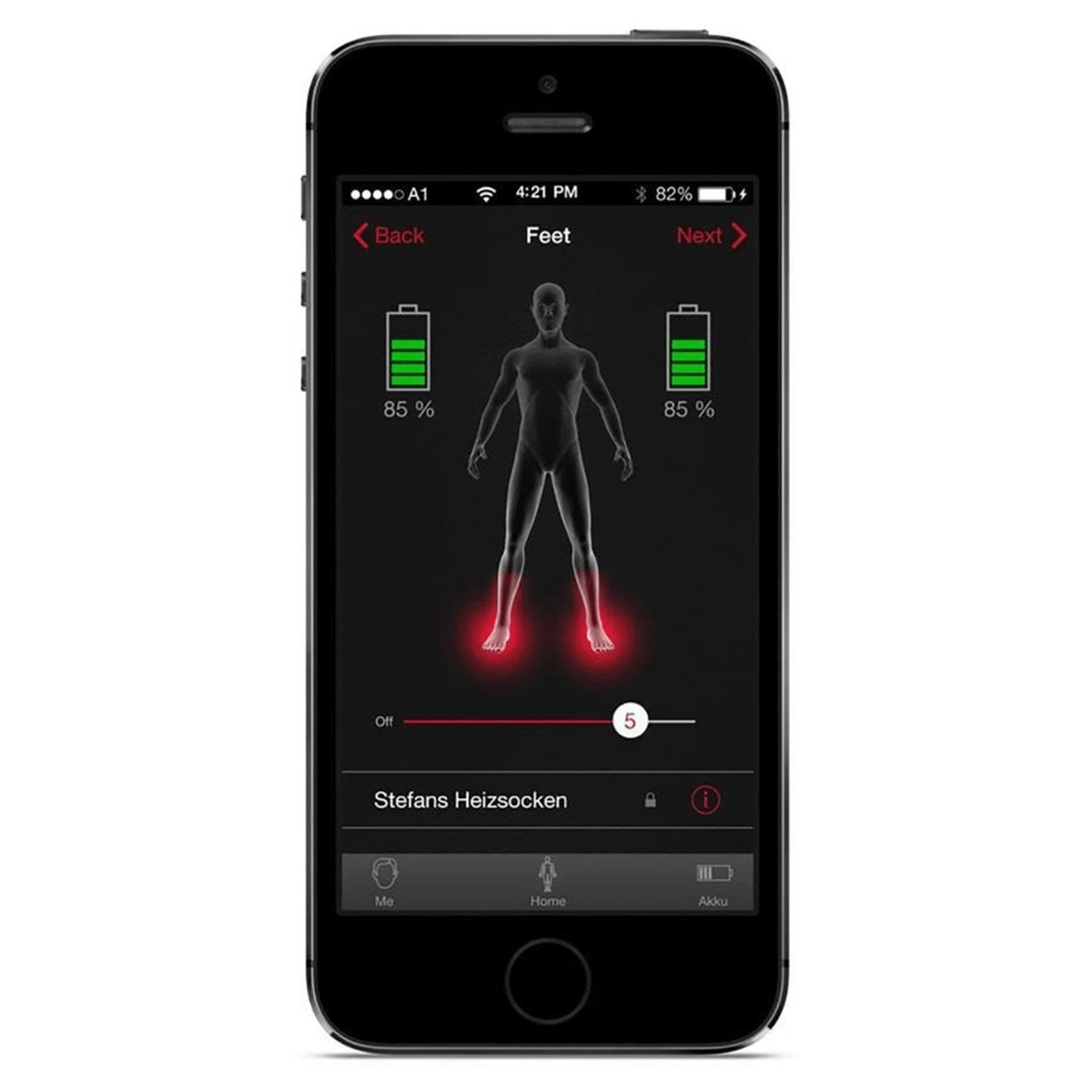 The rcB 1800 lithium packs can be controlled directly on the lithium pack. With the Lenz heat app, however, the heat can also be regulated continuously via smartphone. Optimal when the lithium packs are under several layers of clothing.