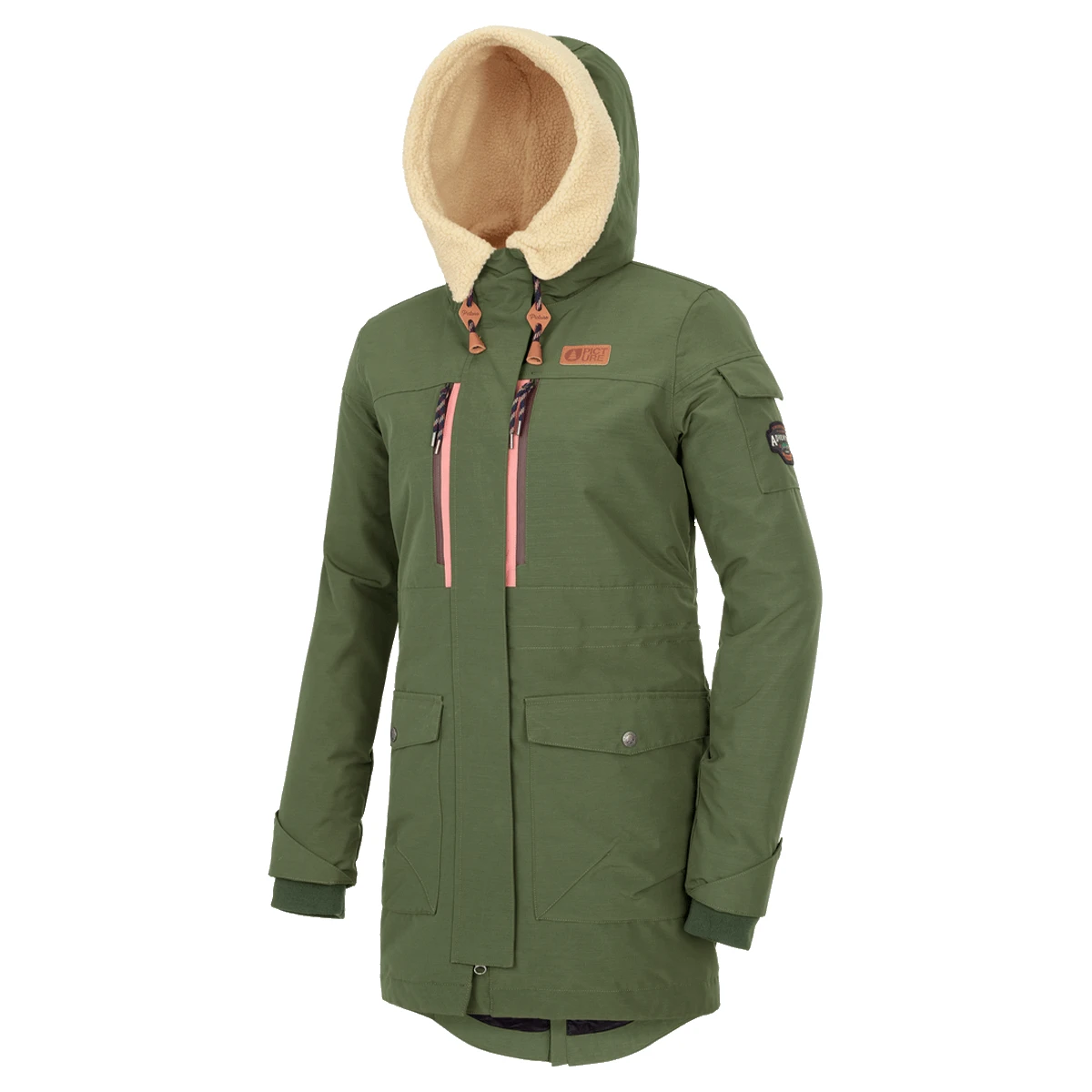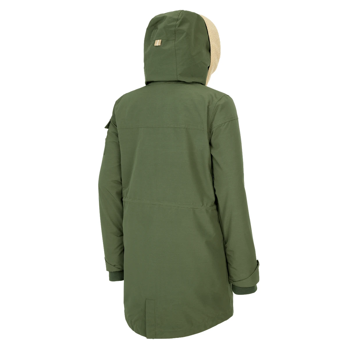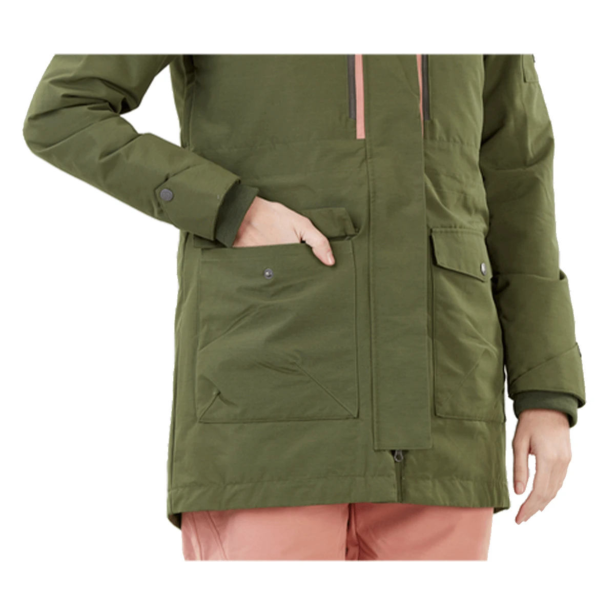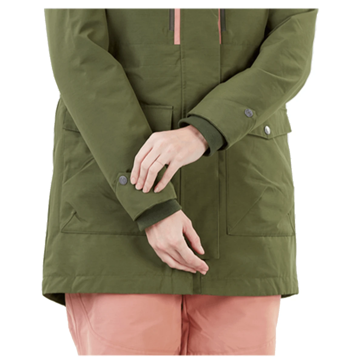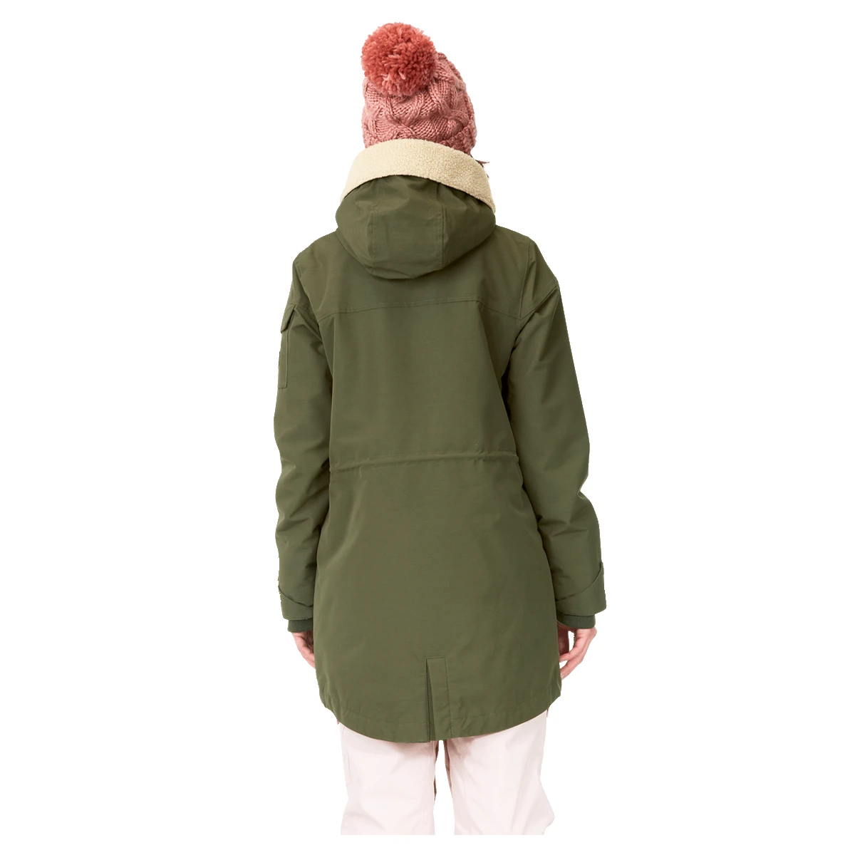 The Camden Jacket is a stylish parka ready for anything, with a fishtail hem, multiple flap pockets with metal-snaps, and retro drawstrings. It also features entire arsenal of foul-weather protection technologies: DRYPLAY 10K/10K waterproof membrane that breathes well and keeps you dry in the nastiest conditions, a Teflon EcoElite™ PFC-free water repellent treatment, critically-taped seams to keep moisture out, a removable powder skirt that attaches to your pants, Thermal STD 40-gram insulation, lined pockets, and a Sherpa fleece lining (hood and upper back) to keep you warm and toasty. The stylishly urban regular cut and adjustable waist will make this a key piece in your wardrobe.