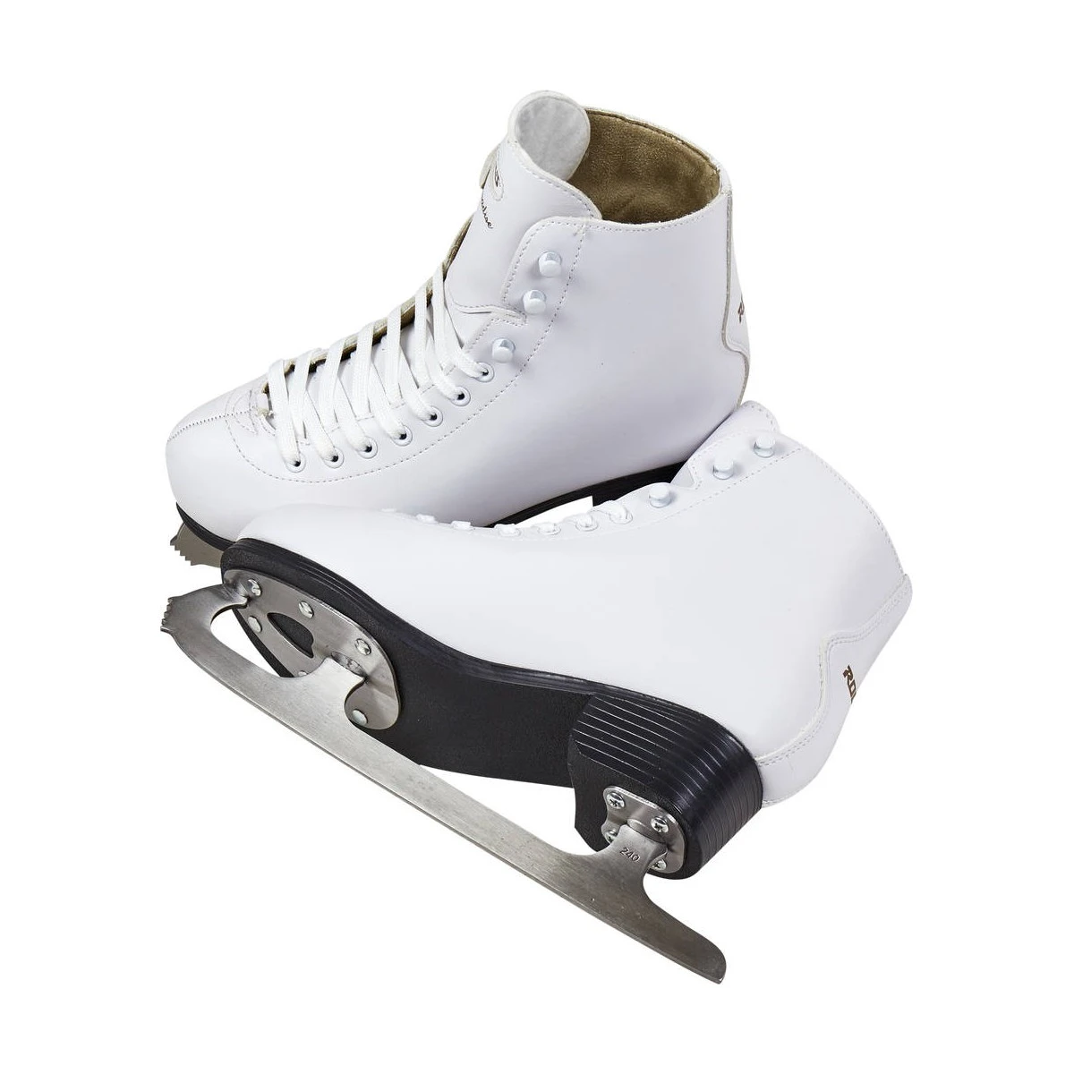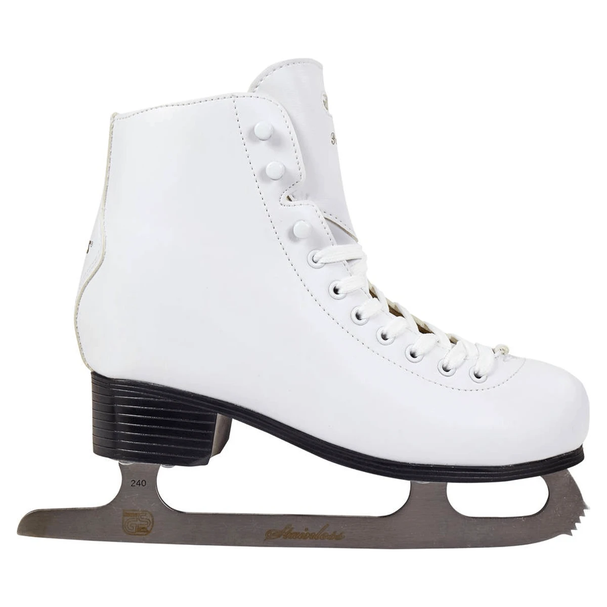 Høj hæl og kunstskøjteklinge i stål med tåhakker, øverste del og tungen er af PVC.