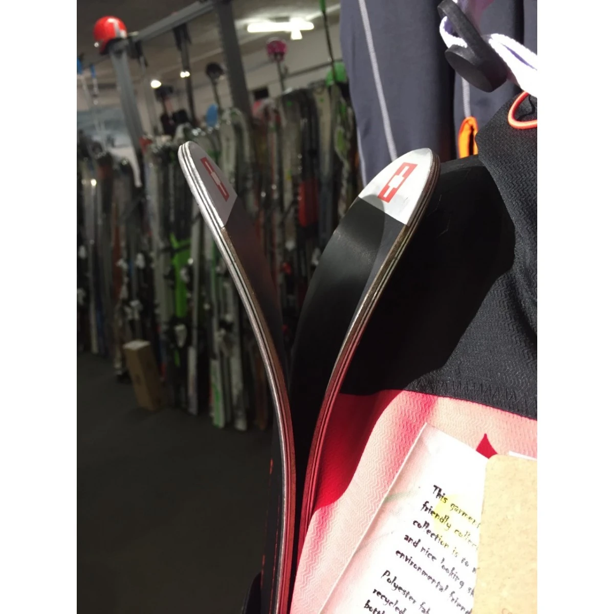 Vi har haft denne ski til at stå som udstilling i butikken for at have en spektakulær ski at snakke med kunden om (sådan kan ski også laves) hvis pris ikke er kundens begrænsning.