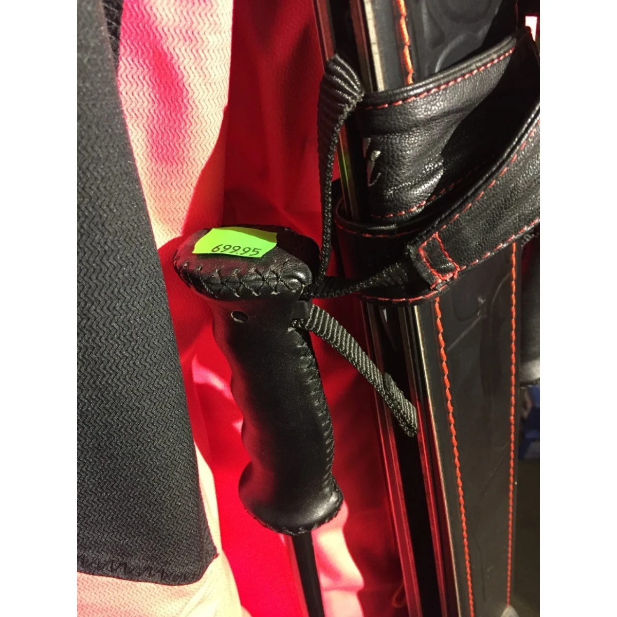 Højkvalitets Læder top struktur med røde håndsyet sting