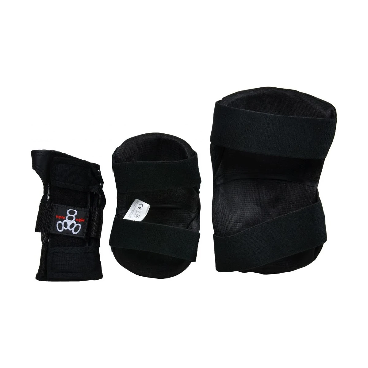 Knæbeskyttere, albuebeskytter samt håndledsbeskyttere i en praktisk 3-pak.